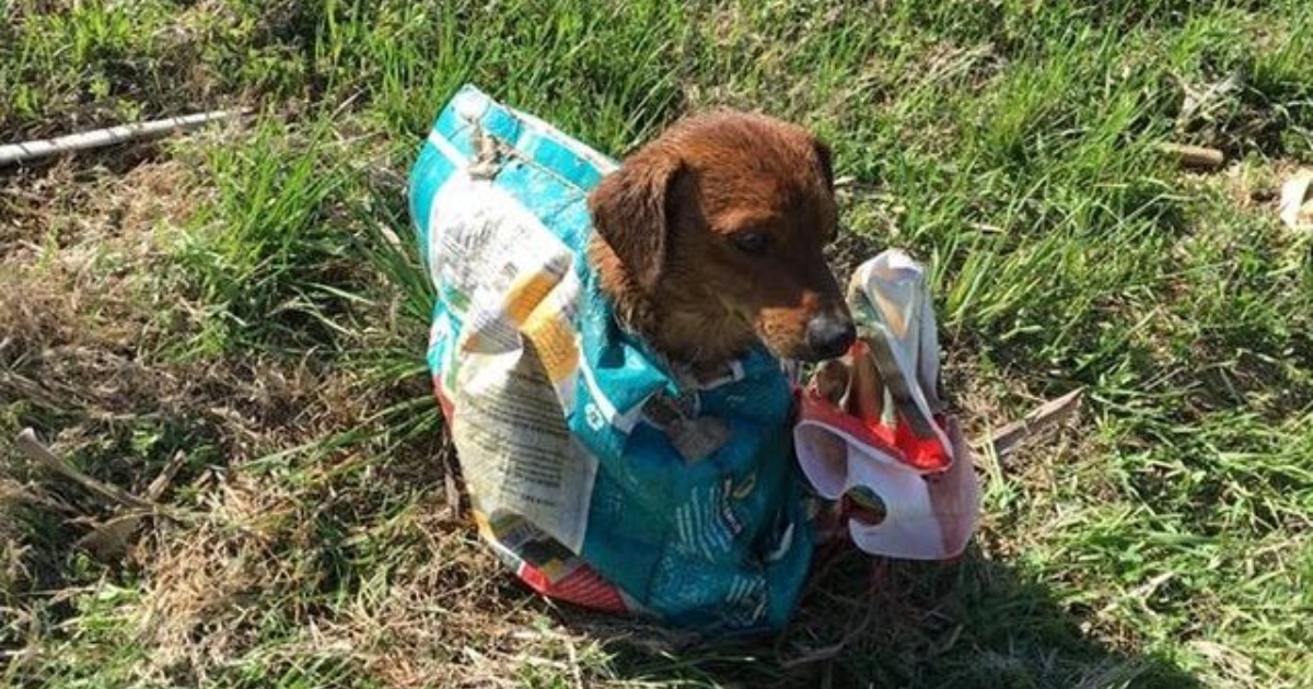 Wade and Mandy are very fond of dogs and they knew the dog was in trouble. They stopped the car and went outside. The reality was depressing. This little dog, which looked like a dachshund mix, was tied with a rope and then stuffed into a paper bag with food, so that only its head was sticking out of the hole.