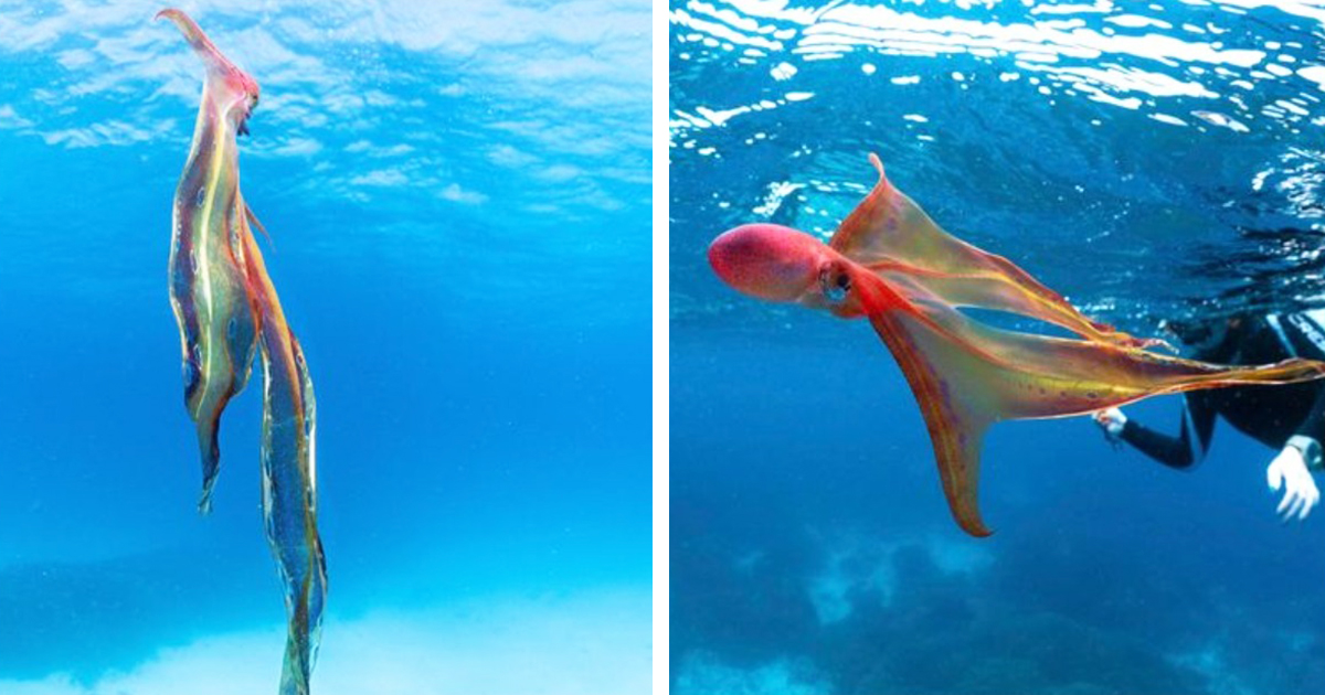 As they came closer they noticed it was an octopus. As they were divers they found out it wasn’t just an ordinary one. It was a blanket octopus, a colorful type known for its flowing drape-like look.