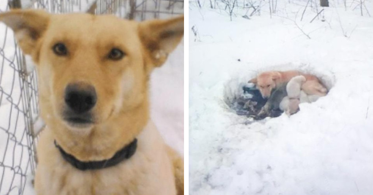 Not only people can earn the title of mother-heroine. Sometimes the deeds of animals amaze us so much that this title can no doubt be given to them. One of these is a devoted mother, a dog named Snowbell, who, along with 6 puppies, was found in the snow near Red Lake in the US state of Minnesota. Despite the severe cold, frost and snowstorms, the dog did not leave her children, she warmed them all the time.