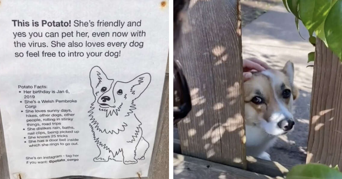 Potato parents have spent time creating the perfect introductory sign for the dog, something beautiful and friendly that shows his personality. They posted it on the outside fence of their house, and suddenly people fell in love with the dog more than before.