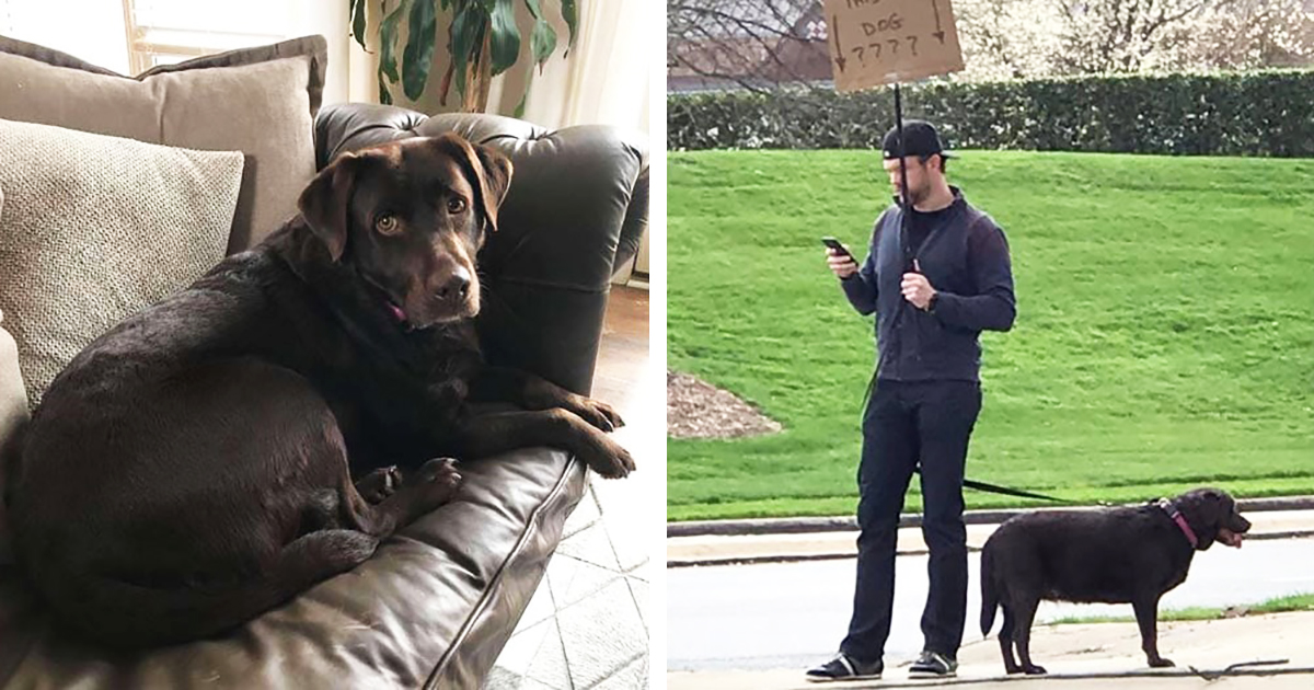 He made a plate from a metal stick and cardboard with two inscriptions: Do you know this dog? I found this dog. Do you know her? Help her come home! And went with the dog to the place where he found the labrador.