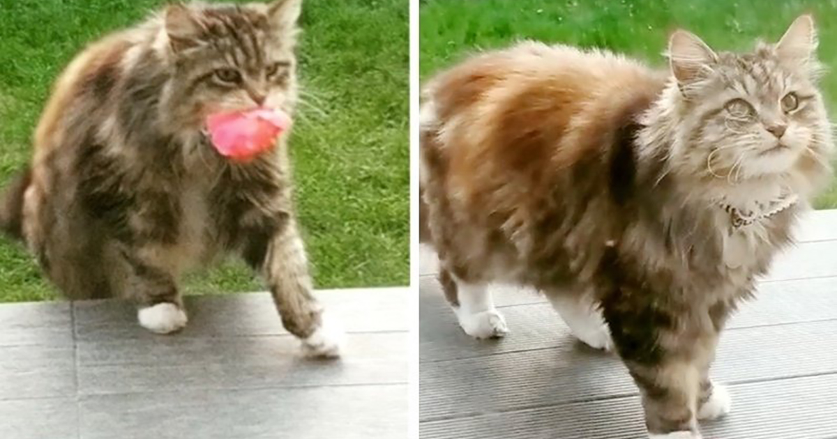 The amazing and friendly cat Willow regularly surprises her neighbors by bringing picked flowers to their porch.