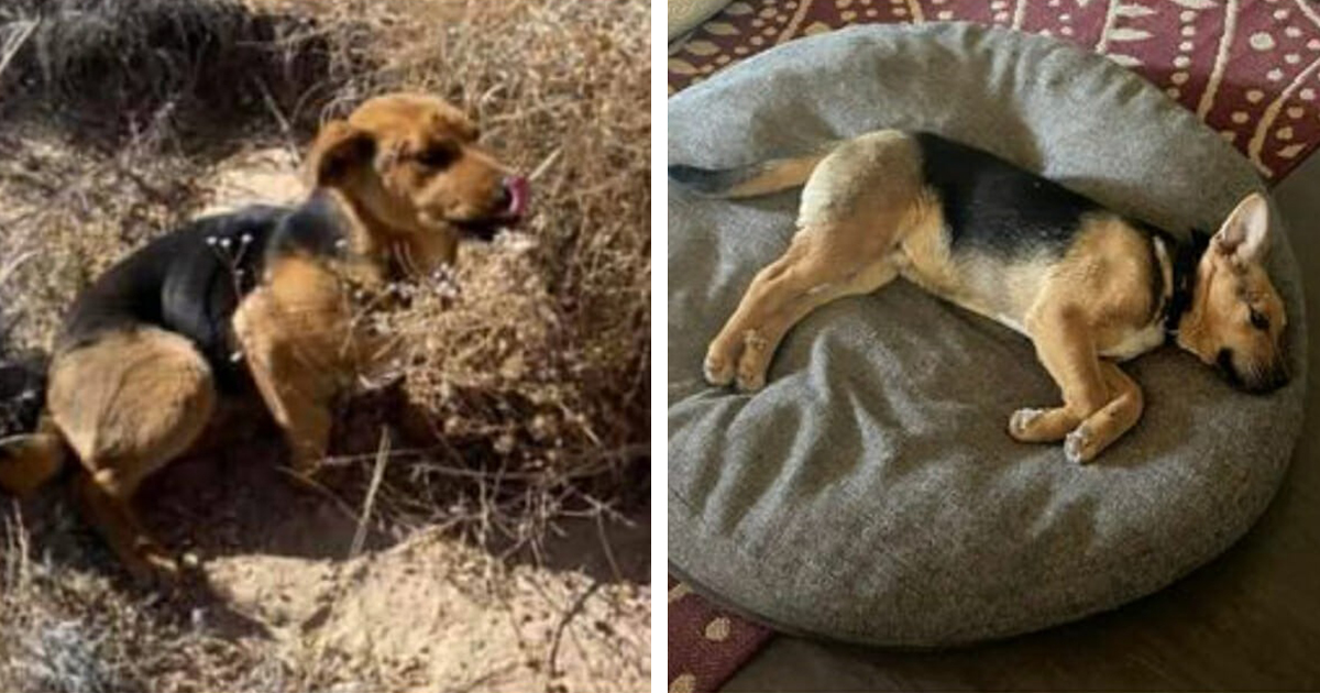 Kristina Munford was going on trip with her family from Oklahoma to California and while they were driving through Arizona desert they stopped on the road to take a family picture. But they noticed a poor dog on the side of the highway in a terrible state.