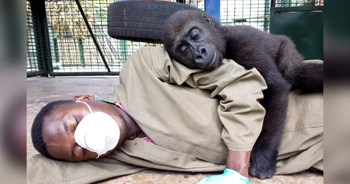 The poor baby gorilla named Bobga had a really hard life. He was just weeks old when he lost his parents and appeared in a terrible condition. Thankfully, due to the Limbe Wildlife Center, the terrified and confused animal was saved and taken there in time. He didn’t trust humans as he had an awful experience connected with them.
