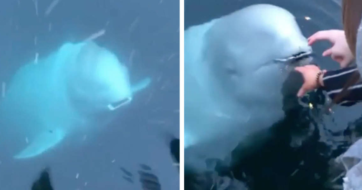 Lately the adorable creature appeared in the waters of Hammerfest, Norway. It was a huge white whale wearing a harness. It was supposed that he was traines by the Russian navy from which he seemingly escaped.