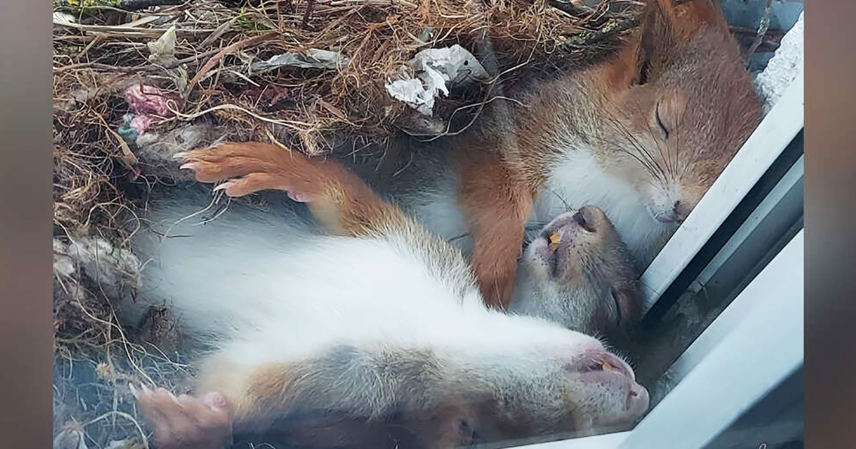 A few months ago a guy named Lyudwig Timm noticed some movement on his window. It was founded to be a constructing of an unusal house on the window. Initially, there were some feathers and the man thought the wind blew them. But then he noticed the squirrel family doing something strange there.