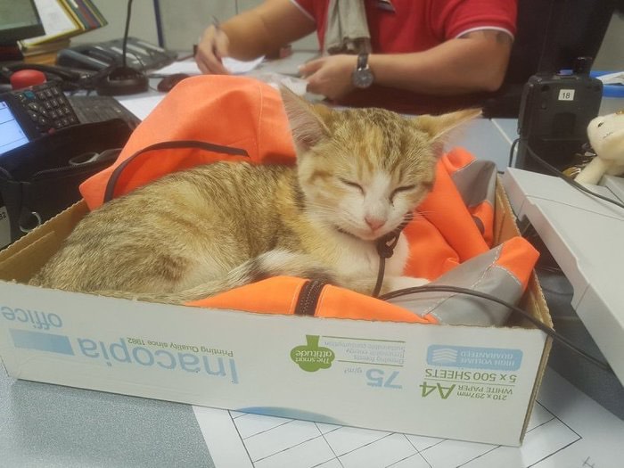 The conductor took a picture of the kitty and posted it on his Twitter.