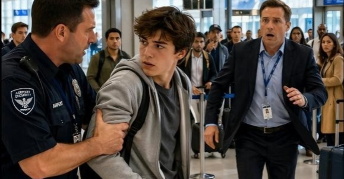 Il ragazzo, appena sedicenne e con una felpa consunta, sembrava piccolo e intrappolato. Il suo volto impallidì e gli occhi scattarono verso l’uscita, poi verso la guardia, poi di nuovo verso i pugni serrati. Esitò, una goccia di sudore che gli scendeva dalla tempia, cosa che non fece che rafforzare la convinzione della guardia. «So cosa ho visto nei monitor», sibilò, tirandolo più vicino. «Il direttore sta arrivando. Evitati problemi e mostrami quello che hai rubato.» La tensione era densa, il silenzio del pubblico interrotto solo dagli annunci lontani dei voli.