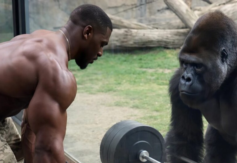 Un atleta possente, a caccia di un video sensazionale e di visualizzazioni facili, decise di “sfidare” un gorilla: gli mostrò come sollevava un bilanciere pesantissimo, convinto che l’animale avrebbe imitato il gesto