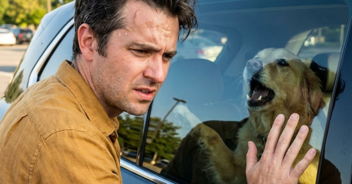 Il sole del pomeriggio era implacabile, trasformando la berlina parcheggiata in un forno sotto pressione. All’interno, un golden retriever si scagliava contro il vetro, i suoi latrati che si trasformavano in ansimi frenetici e spezzati. L’esplosione d’ira dell’uomo sembrava una tipica manifestazione della moderna rabbia stradale, i suoi stivali che colpivano con forza lo pneumatico mentre una piccola folla iniziava a radunarsi, sussurrando di chiamare le autorità.