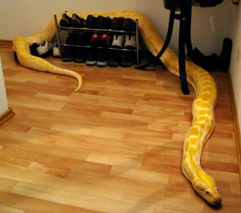 A un certo punto il pitone si arrotolò attorno alle sue gambe — proprio come nelle foto in cui i serpenti stringono una persona addormentata.